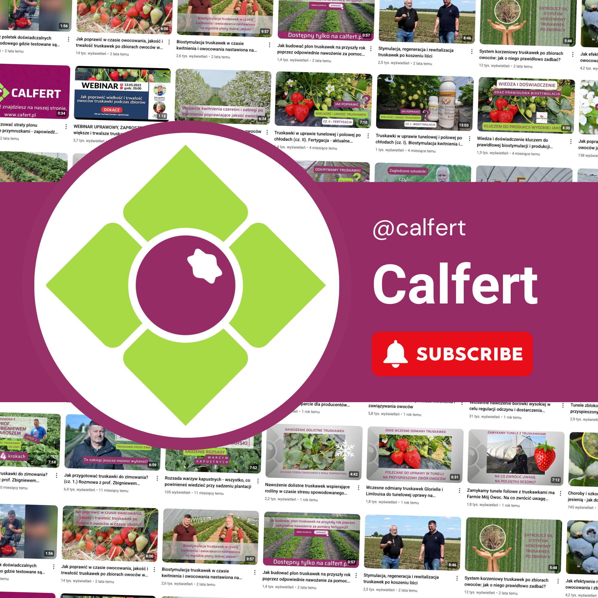 Kanał Calfert na YouTube to przestrzeń dla profesjonalnych producentów owoców i warzyw. Dzielimy się tu wiedzą specjalistyczną (agrotechnika, nawożenie, biostymulacja, ochrona roślin i inne). Znajdziesz tu praktyczne porady, branżowe nowinki, wyniki doświadczeń, rozmowy z ekspertami czy relacje z innych plantacji.