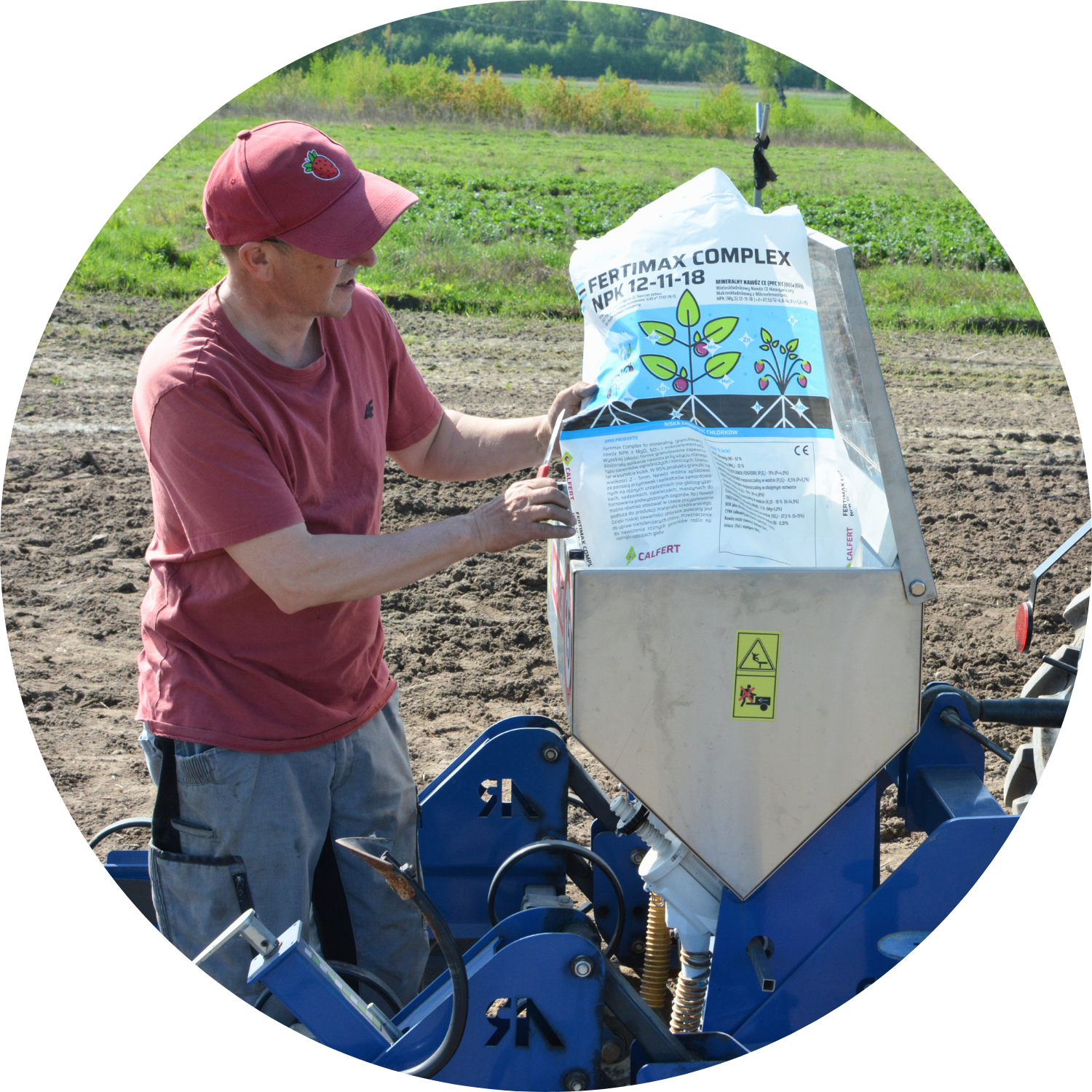 - Nawozy wieloskładnikowe – kompleksowe wsparcie z nawozem Fertimax Complex NPK 12-11-18 z magnezem, siarką i mikroelementami dostarcza roślinom pełen pakiet niezbędnych składników niezbędnych do prawidłowego wzrostu i rozwoju truskawek. Dodatkowo jego niebieskie, higroskopijne granule łatwo się rozpuszczają, szybko uwalniając składniki pokarmowe do gleby. Co więcej, Fertimax Complex można aplikować z wykorzystaniem różnego rodzaju podsiewaczy i aplikatorów. Tym samym podczas pracy glebogryzarką jednocześnie podajemy roślinom nawóz i mieszamy go z wierzchnią warstwą gleby, co minimalizuje straty i zwiększa dostępność składników dla roślin.