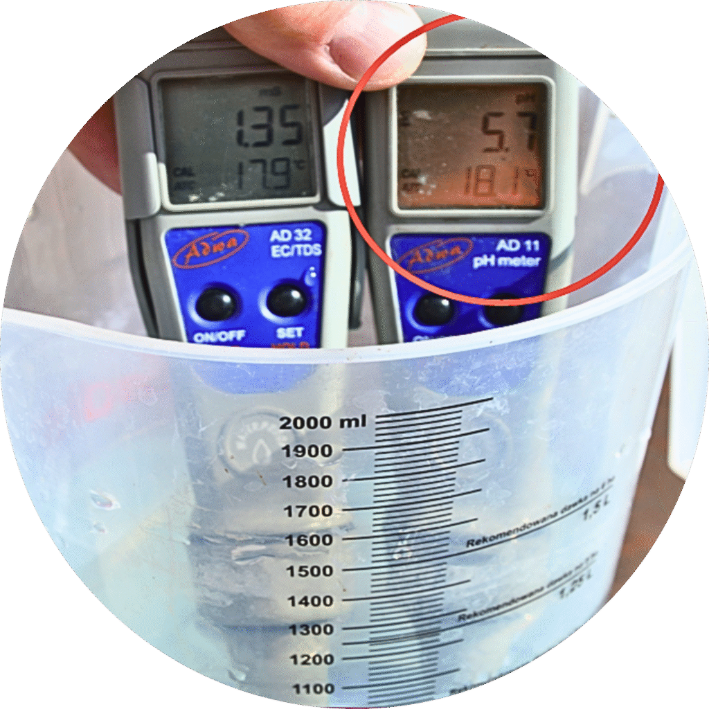 Nawóz z oznaczeniem “Low pH” obniża odczyn cieczy roboczej. Zawiera związek buforowy, który stabilizuje pH roztworu. Dzięki temu nie ma potrzeby używania dodatkowych komponentów (np. kwasu azotowego lub kwasu fosforowego) do zakwaszenia roztworu w czasie sporządzania pożywki nawozowej.