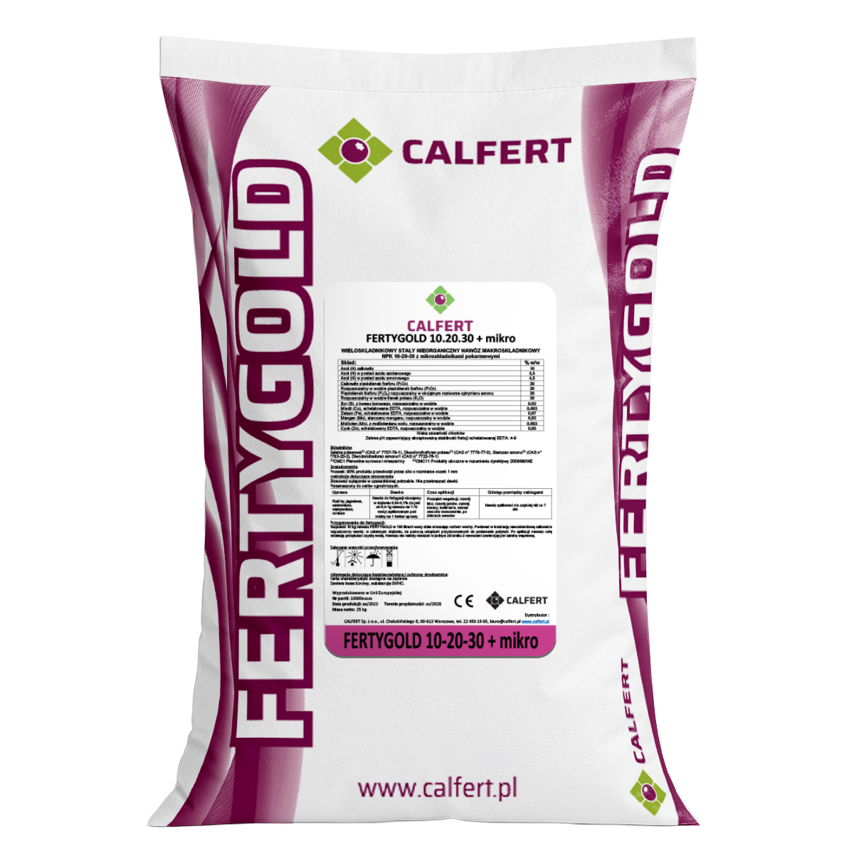 Nawóz FERTYGOLD 10-20-30 + mikro ma zbilansowany skład.