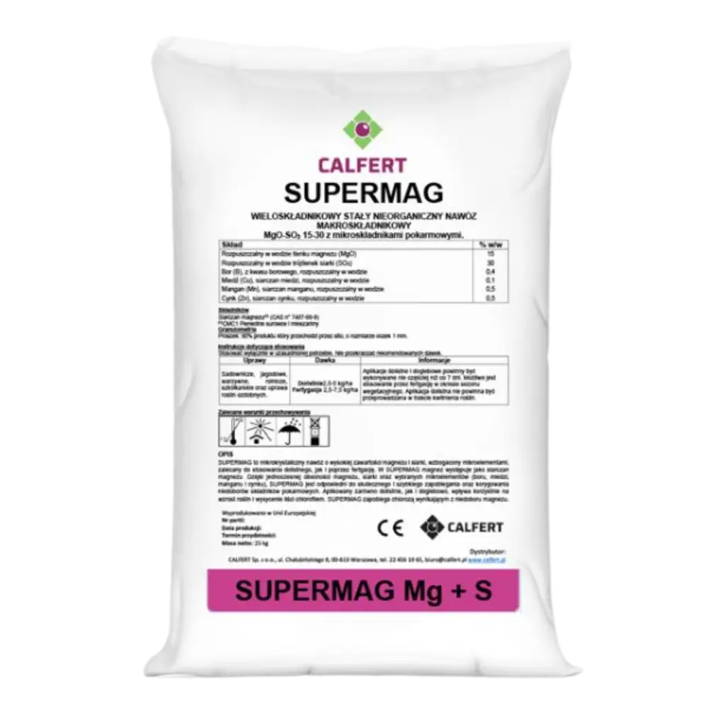 - SUPERMAG siarczan magnezu + mikroelementy można stosować dolistnie i doglebowo nie częściej niż co 7 dni.