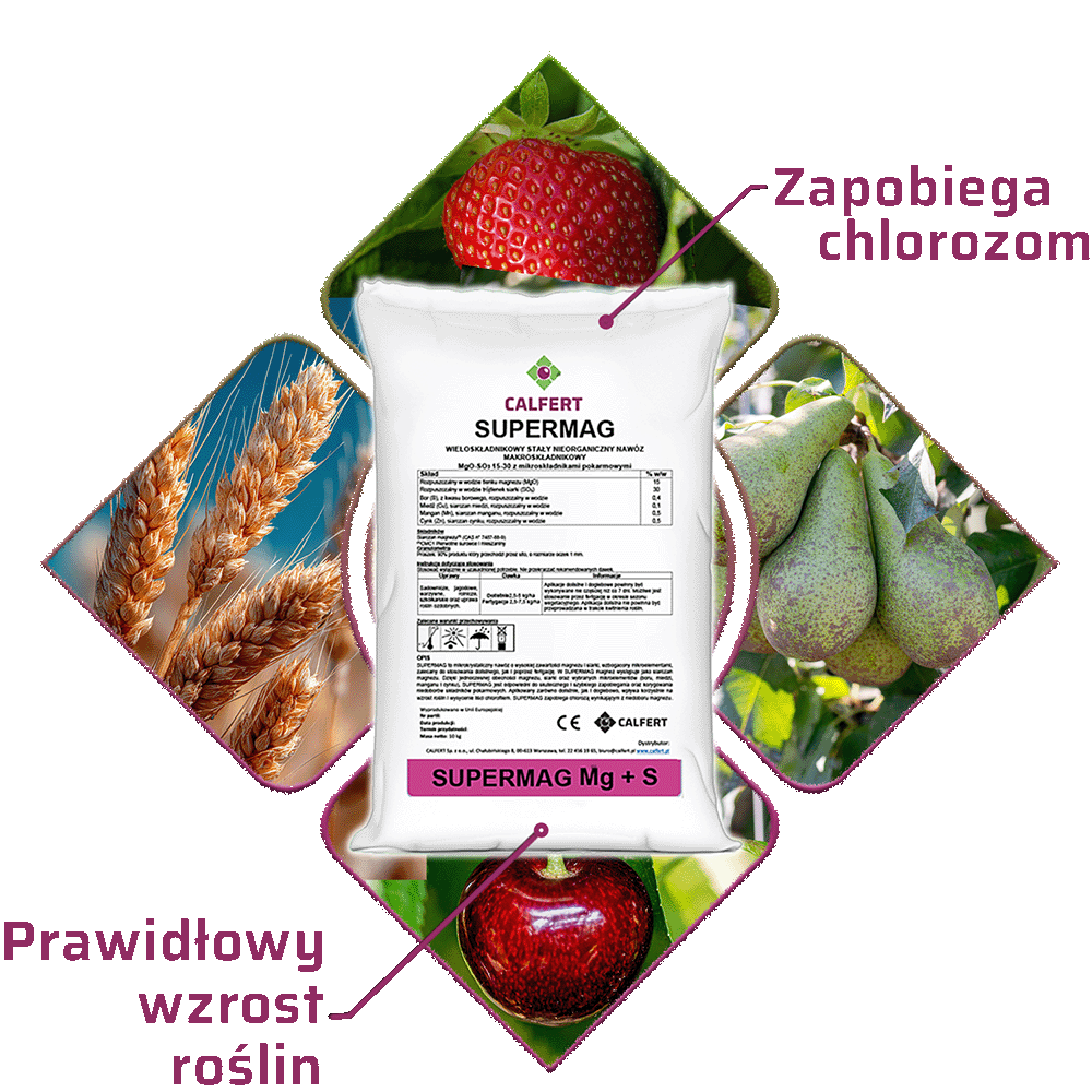 SUPERMAG to nawóz w formie mikrokrystalicznego proszku o wysokiej zawartości magnezu i siarki, wzbogacony mikroelementami, zalecany do stosowania dolistnego, jak i poprzez fertygację.