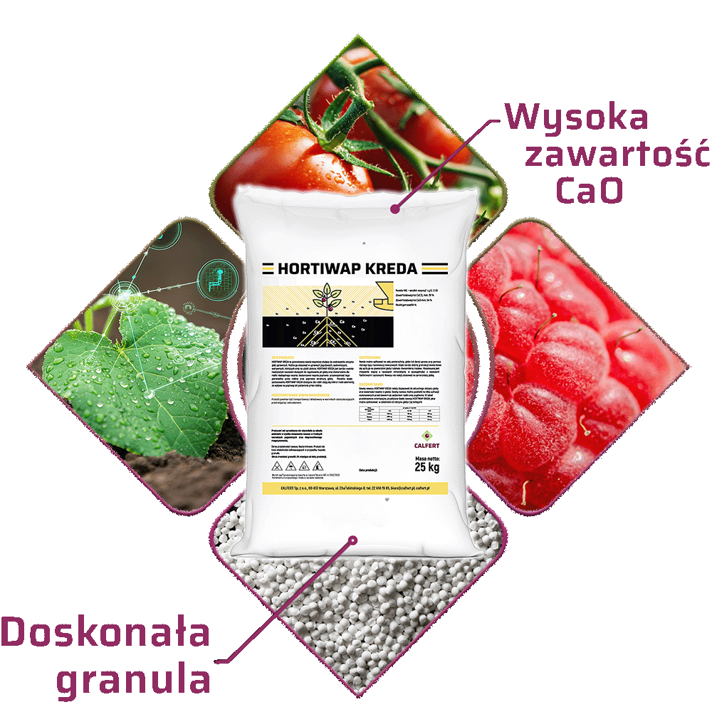 Granulowany nawóz wapniowy o bardzo wysokiej reaktywności, przeznaczony do podnoszenia odczynu pH gleb w uprawach rolniczych, sadowniczych, jagodowych, warzywnych oraz na użytkach zielonych.